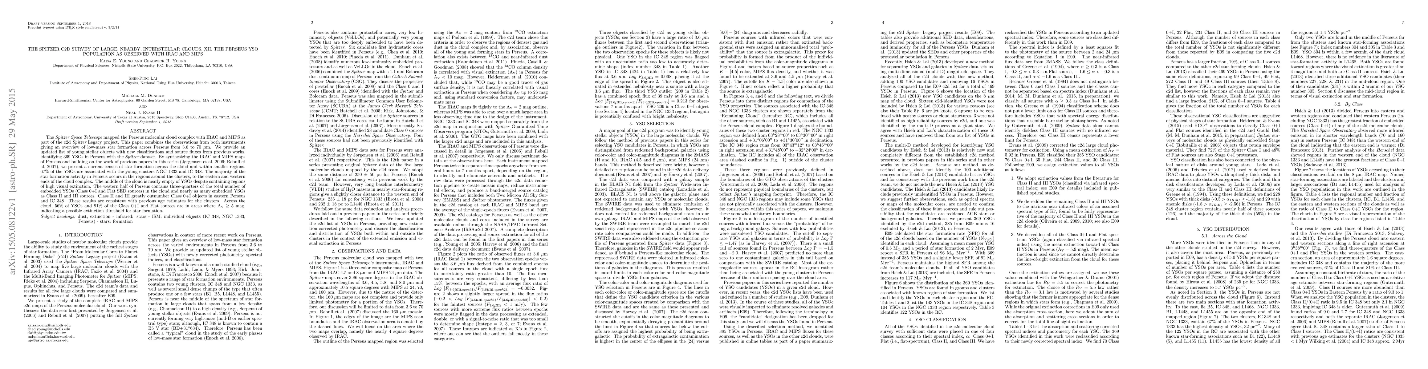 This paper uses Spitzer Space Telescope data from IRAC and MIPS to survey the Perseus molecular cloud, identifying 369 young stellar objects (YSOs) and providing updated classifications and fluxes. Most star formation activity is concentrated around the NGC 1333 and IC 348 clusters, with a significant extinction threshold for YSO formation.