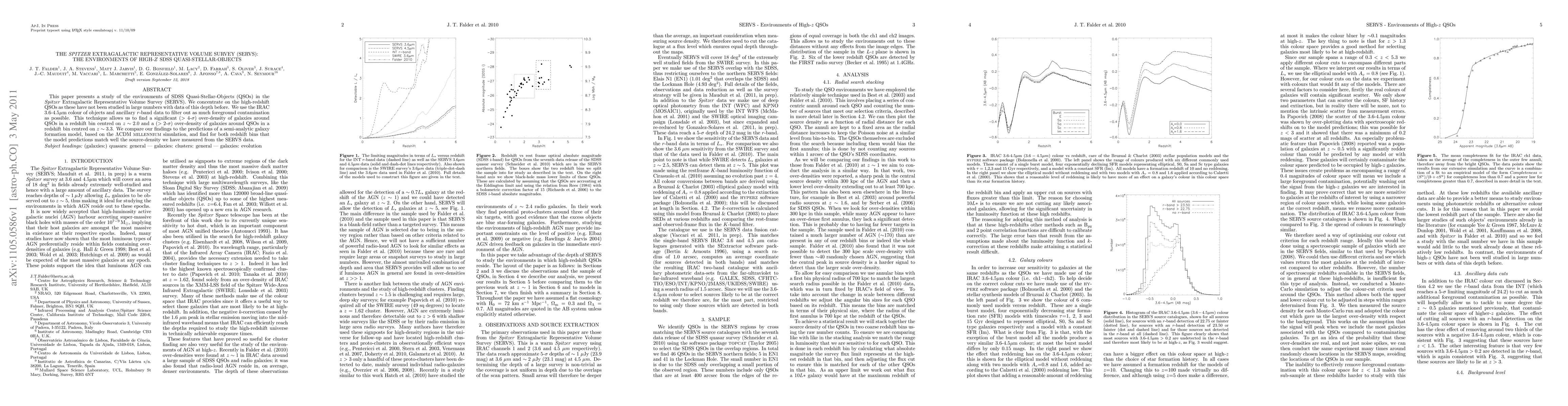 This paper presents a study of the environments of SDSS Quasi-Stellar-Objects (QSOs) in the Spitzer Extragalactic Representative Volume Survey (SERVS). We concentrate on the high-redshift QSOs as these have not been studied in large numbers with data of this depth before. We use the IRAC 3.6-4.5{\mu}m colour of objects and ancillary r-band data to filter out as much foreground contamination as possible. This technique allows us to find a significant (> 4-{\sigma}) over-density of galaxies around QSOs in a redshift bin centred on z ~ 2.0 and a (> 2-{\sigma}) over-density of galaxies around QSOs in a redshift bin centred on z ~ 3.3. We compare our findings to the predictions of a semi-analytic galaxy formation model, based on the {\Lambda}CDM millennium simulation, and find for both redshift bins that the model predictions match well the source-density we have measured from the SERVS data.