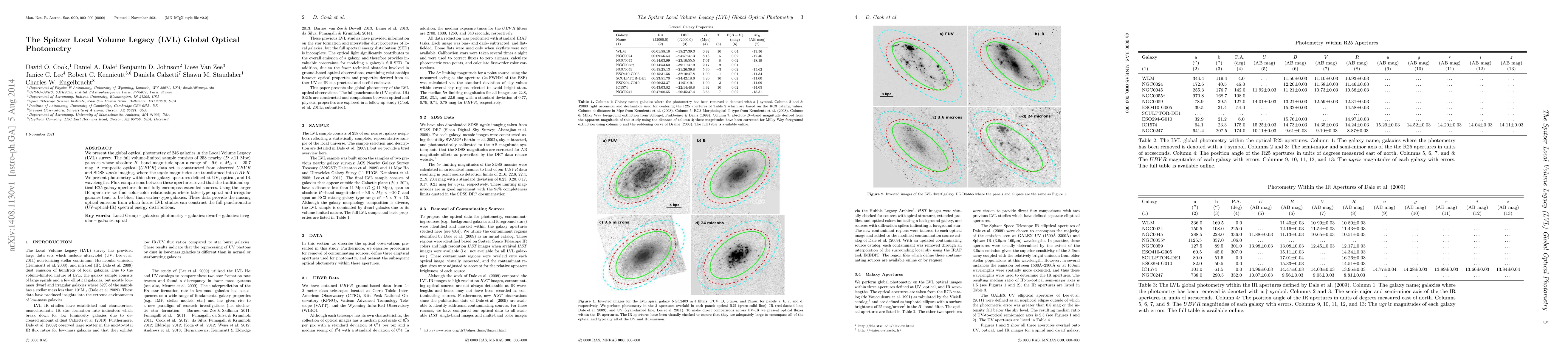 This paper presents global optical photometry for 246 galaxies in the Local Volume Legacy survey, utilizing composite UBVR data from observed imaging. The study highlights discrepancies in traditional optical apertures and suggests extended sources require larger IR apertures for accurate color-color relationships.