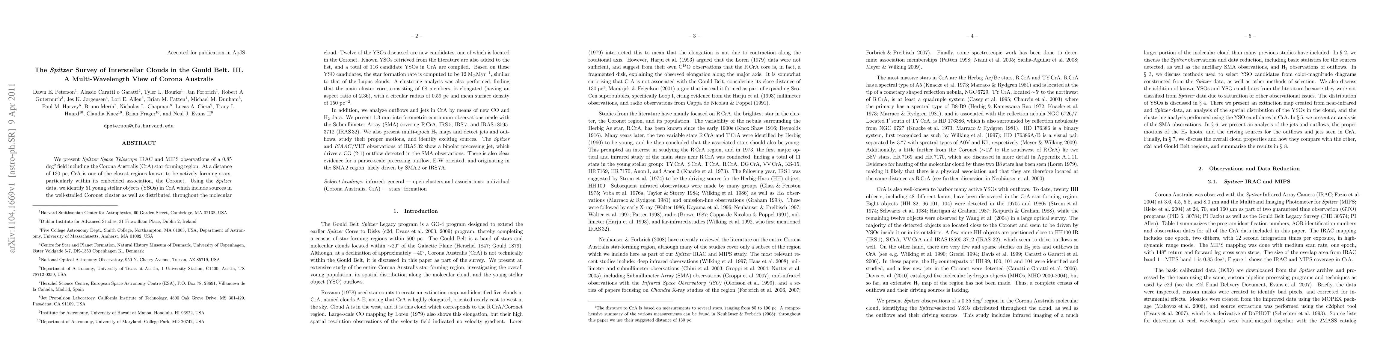 We present Spitzer Space Telescope IRAC and MIPS observations of a 0.85 deg^2 field including the Corona Australis (CrA) star-forming region. At a distance of 130 pc, CrA is one of the closest regions known to be actively forming stars, particularly within its embedded association, the Coronet. Using the Spitzer data, we identify 51 young stellar objects (YSOs) in CrA which include sources in the well-studied Coronet cluster as well as distributed throughout the molecular cloud. Twelve of the YSOs discussed are new candidates, one of which is located in the Coronet. Known YSOs retrieved from the literature are also added to the list, and a total of 116 candidate YSOs in CrA are compiled. Based on these YSO candidates, the star formation rate is computed to be 12 M_o Myr^-1, similar to that of the Lupus clouds. A clustering analysis was also performed, finding that the main cluster core, consisting of 68 members, is elongated (having an aspect ratio of 2.36), with a circular radius of 0.59 pc and mean surface density of 150 pc^-2. In addition, we analyze outflows and jets in CrA by means of new CO and H_2 data. We present 1.3 mm interferometric continuum observations made with the Submillimeter Array (SMA) covering R CrA, IRS 5, IRS 7, and IRAS 18595-3712 (IRAS 32). We also present multi-epoch H_2 maps and detect jets and outflows, study their proper motions, and identify exciting sources. The Spitzer and ISAAC/VLT observations of IRAS 32 show a bipolar precessing jet, which drives a CO (2-1) outflow detected in the SMA observations. There is also clear evidence for a parsec-scale precessing outflow, E-W oriented, and originating in the SMA 2 region, likely driven by SMA 2 or IRS 7A.