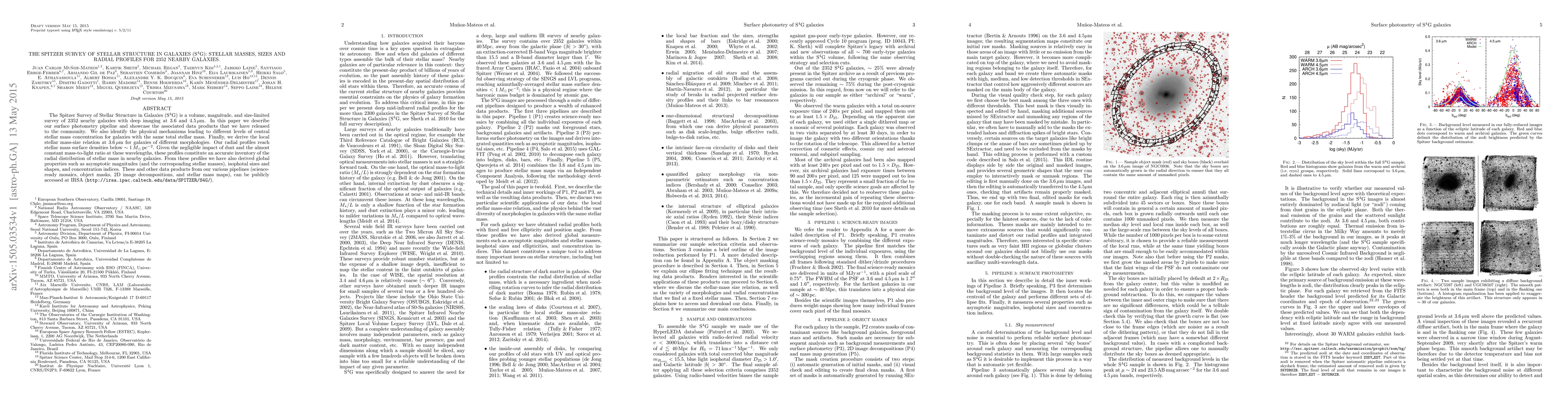 The Spitzer Survey of Stellar Structure in Galaxies (S4G) provides detailed surface photometry and radial profiles for 2352 nearby galaxies, revealing the local stellar mass-size relation and mechanisms behind varying central stellar mass concentrations. The data products, including stellar mass maps and concentration indices, are publicly accessible at IRSA.