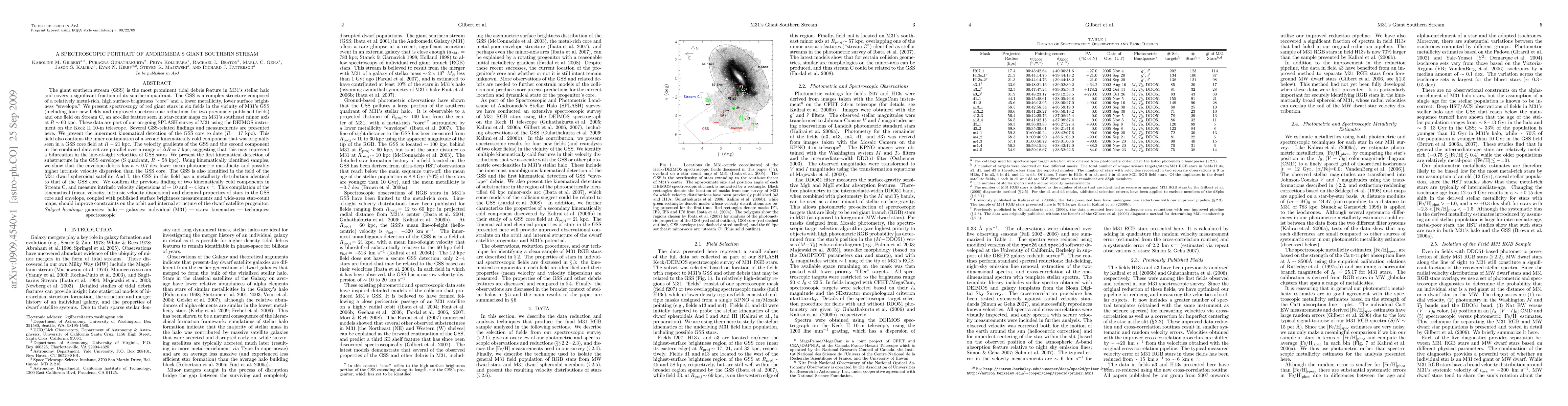 The SPLASH Survey reveals detailed spectroscopic data on M31's giant southern stream (GSS), identifying kinematical and chemical substructures within its core and envelope. The study confirms the presence of two kinematically cold components and provides new insights into the stream's internal structure and the progenitor dwarf satellite.