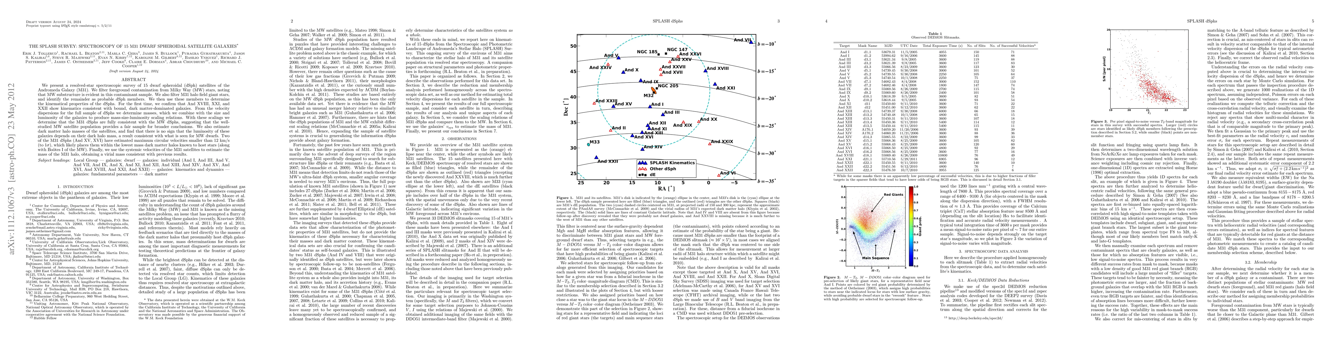 The SPLASH Survey provides resolved-star spectroscopy for 15 M31 dwarf spheroidal satellites, revealing the kinematical properties and dark matter content of these galaxies. The study confirms that And XVIII, XXI, and XXII are bound, dark matter-dominated galaxies, and estimates the total mass of M31's dark matter halo, consistent with previous results.