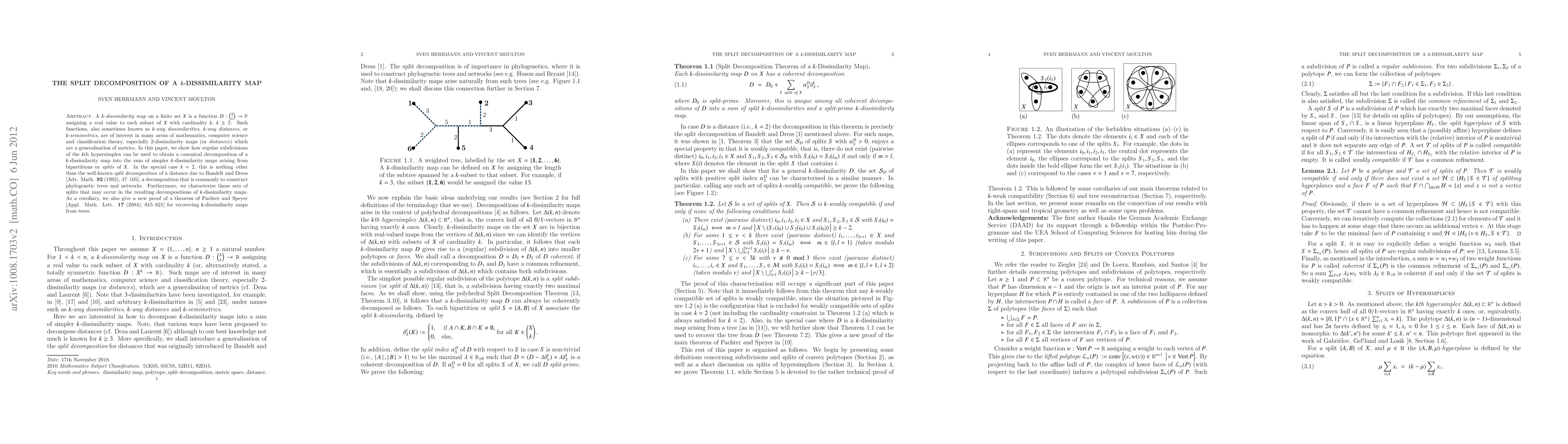 The paper presents a method for decomposing k-dissimilarity maps into simpler components using regular subdivisions of the kth hypersimplex, extending the split decomposition of 2-dissimilarity maps (distances) to higher dimensions.