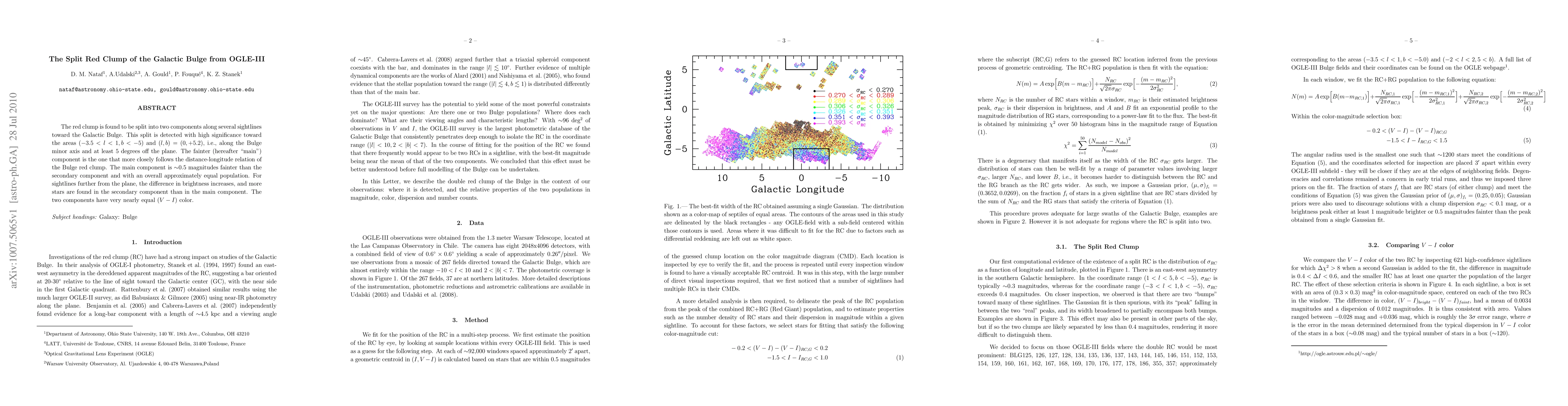 The red clump is found to be split into two components along several