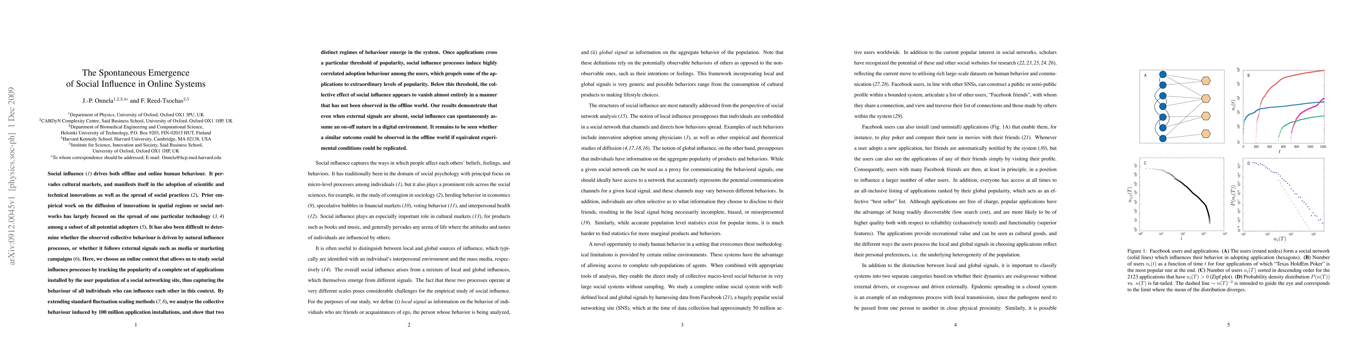 This study investigates the spontaneous emergence of social influence in online systems by tracking the popularity of all applications on a social networking site. It reveals two distinct regimes of behaviour: below a popularity threshold, social influence is negligible, while above it, social influence drives highly correlated adoption, leading to extraordinary popularity levels.