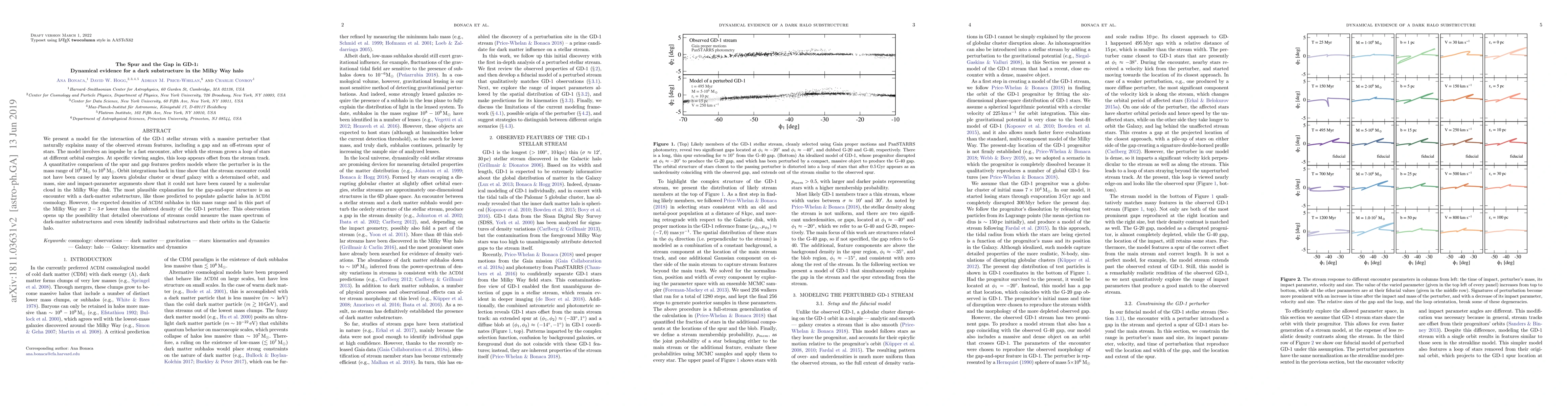 We present a model for the interaction of the GD-1 stellar stream with a massive perturber that naturally explains many of the observed stream features, including a gap and an off-stream spur of stars. The model involves an impulse by a fast encounter, after which the stream grows a loop of stars at different orbital energies. At specific viewing angles, this loop appears offset from the stream track. A quantitative comparison of the spur and gap features prefers models where the perturber is in the mass range of $10^6\,\rm M_\odot$ to $10^8\,\rm M_\odot$. Orbit integrations back in time show that the stream encounter could not have been caused by any known globular cluster or dwarf galaxy with a determined orbit, and mass, size and impact-parameter arguments show that it could not have been caused by a molecular cloud in the Milky Way disk. The most plausible explanation for the gap-and-spur structure is an encounter with a dark-matter substructure, like those predicted to populate galactic halos in LCDM cosmology. However, the expected densities of LCDM subhalos in this mass range and in this part of the Milky Way are $2-3\,\sigma$ lower than the inferred density of the GD-1 perturber. This observation opens up the possibility that detailed observations of streams could measure the mass spectrum of dark-matter substructures and even identify individual substructures and their orbits in the Galactic halo.