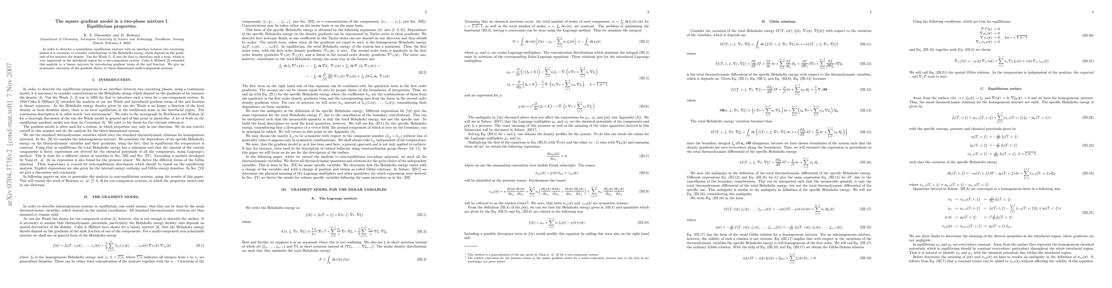 This paper systematically extends the square gradient model to three-dimensional multi-component systems, focusing on the equilibrium properties of nonuniform mixtures with interfaces between coexisting phases, incorporating gradient contributions to the Helmholtz energy. The work builds on foundational theories by Van der Waals and Cahn & Hilliard.