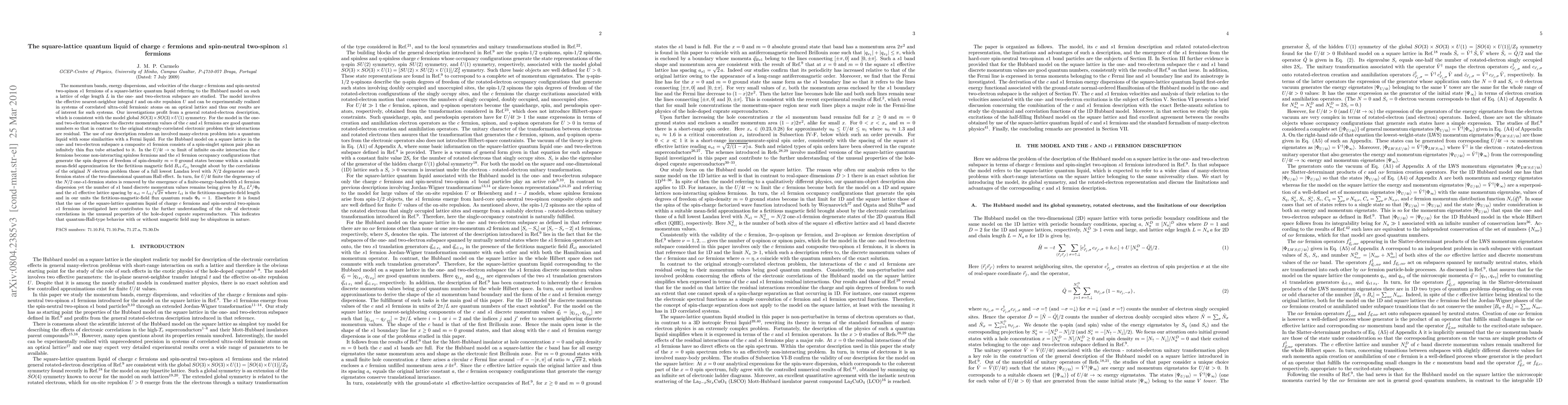 Researchers studied a quantum liquid of charge c fermions and spin-neutral two-spinon s1 fermions in a square-lattice Hubbard model, finding similarities with Fermi liquids and potential applications in ultra-cold fermionic atoms.