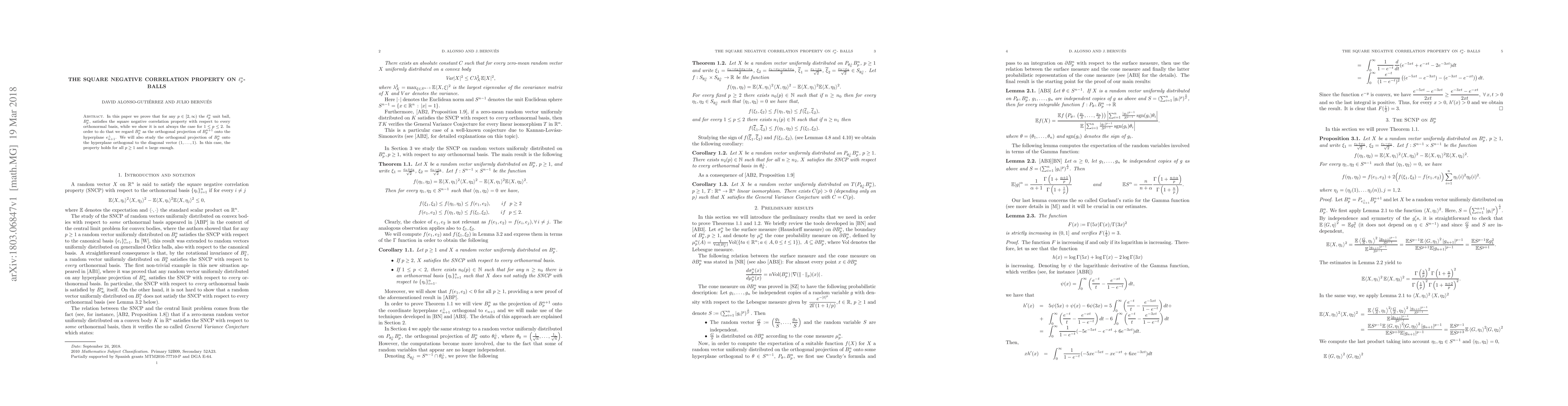 Researchers prove that for $p eq 2$, the $ ho$-ball satisfies square negative correlation with respect to every orthonormal basis, but not always for $1 eq p eq 2$.