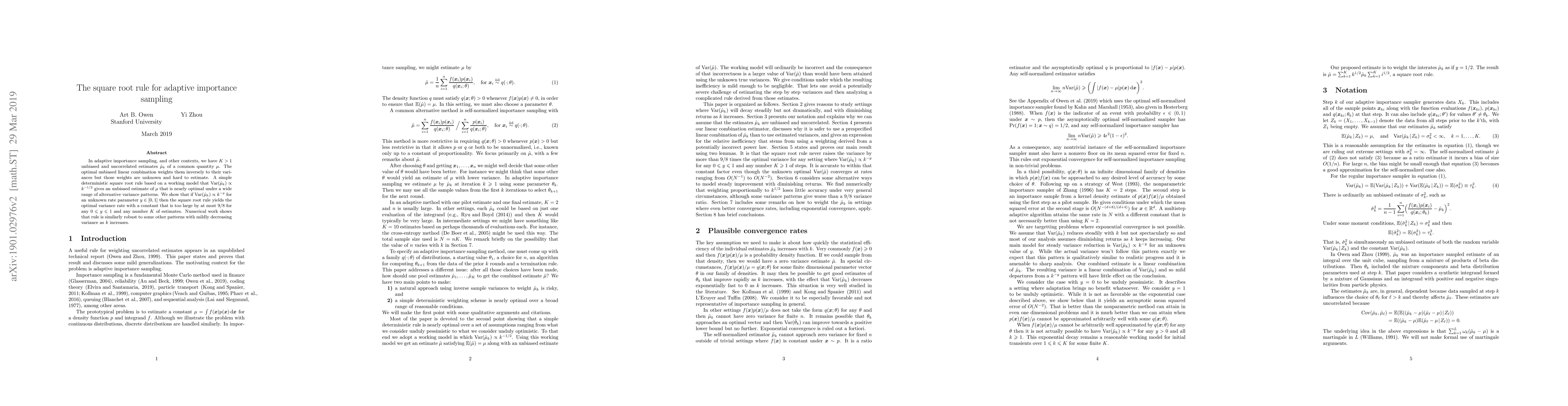 Researchers have found that a simple square root rule for adaptive importance sampling is nearly optimal for a wide range of variance patterns, with an error margin of at most 9/8.
