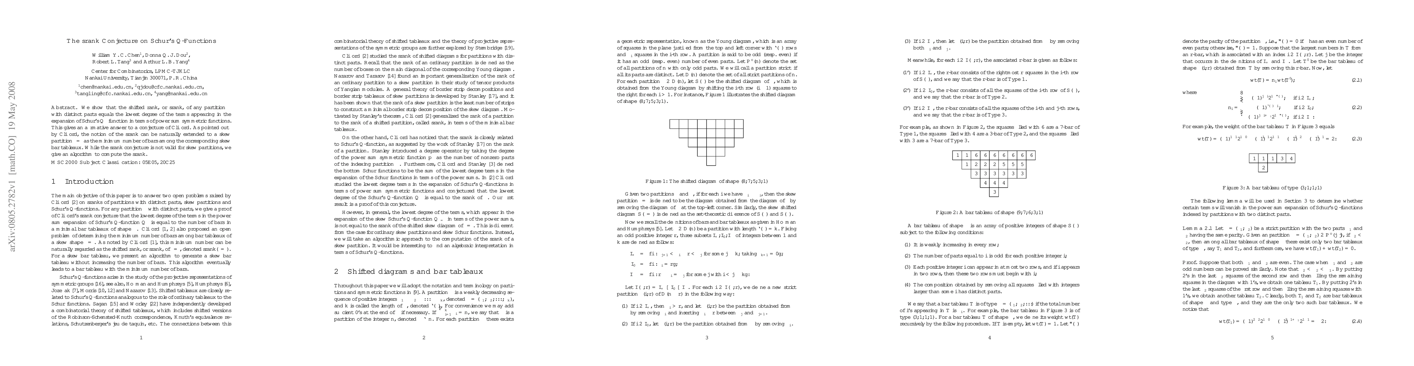 We show that the shifted rank, or srank, of any partition $\lambda$ with distinct parts equals the lowest degree of the terms appearing in the expansion of Schur's $Q_{\lambda}$ function in terms of power sum symmetric functions. This gives an affirmative answer to a conjecture of Clifford. As pointed out by Clifford, the notion of the srank can be naturally extended to a skew partition $\lambda/\mu$ as the minimum number of bars among the corresponding skew bar tableaux. While the srank conjecture is not valid for skew partitions, we give an algorithm to compute the srank.