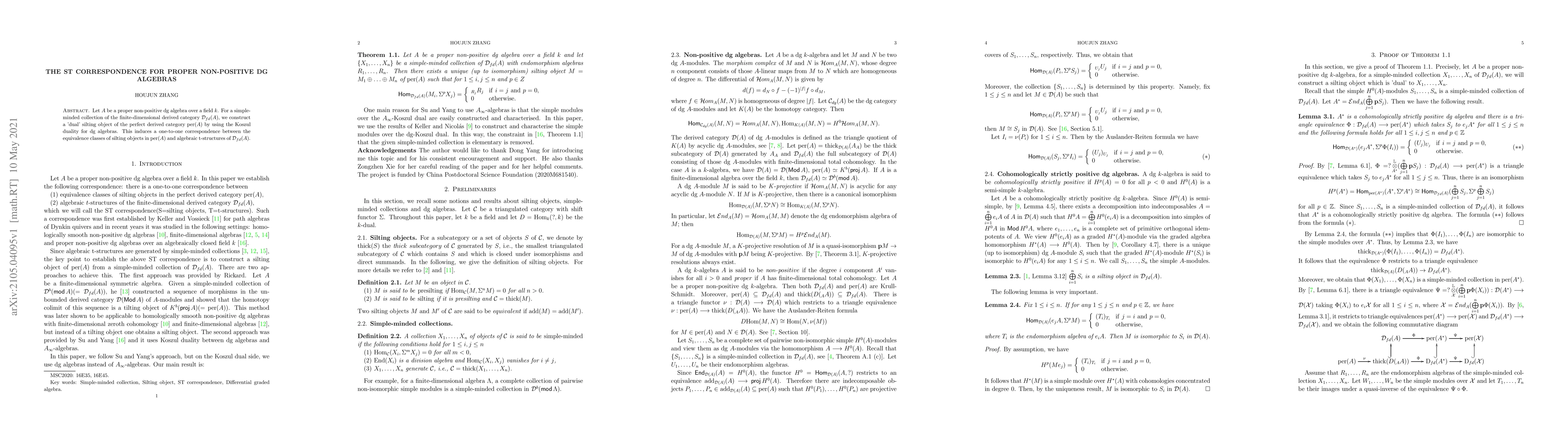 Let $A$ be a proper non-positive dg algebra over a field $k$. For a simple-minded collection of the finite-dimensional derived category $\mathcal{D}_{fd}(A)$, we construct a 'dual' silting object of the perfect derived category $\mathrm{per}(A)$ by using the Koszul duality for dg algebras. This induces a one-to-one correspondence between the equivalence classes of silting objects in $\mathrm{per}(A)$ and algebraic t-structures of $\mathcal{D}_{fd}(A)$.