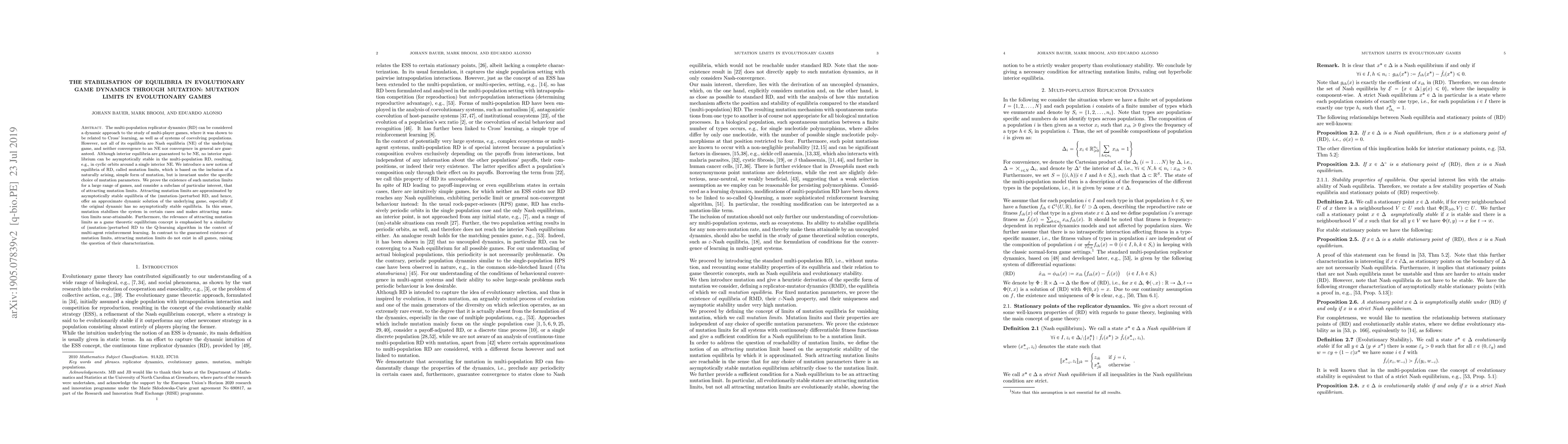 The paper presents a novel equilibrium concept, mutation limits, that stabilizes equilibria in evolutionary game dynamics through mutation, offering a dynamic solution where traditional methods fail, and connects to reinforcement learning algorithms.