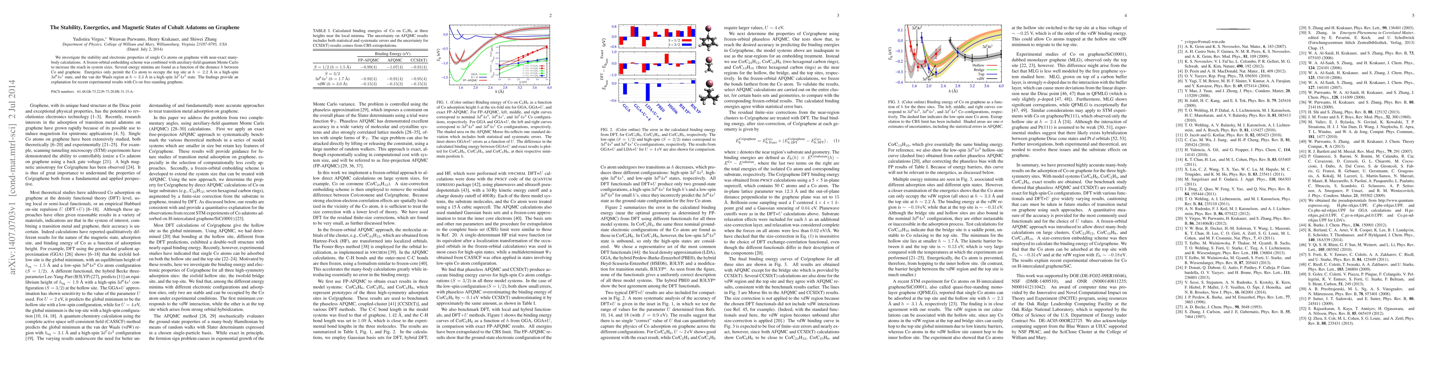 We investigate the stability and electronic properties of single Co atoms on graphene with near-exact many-body calculations. A frozen-orbital embedding scheme was combined with auxiliary-field quantum Monte Carlo to increase the reach in system sizes. Several energy minima are found as a function of the distance $h$ between Co and graphene. Energetics only permit the Co atom to occupy the top site at $h = 2.2$ \AA\ in a high-spin $3d^{8}4s^{1}$ state, and the van der Waals region at $h = 3.3$ \AA\ in a high-spin $3d^{7}4s^{2}$ state. The findings provide an explanation for recent experimental results with Co on free-standing graphene.