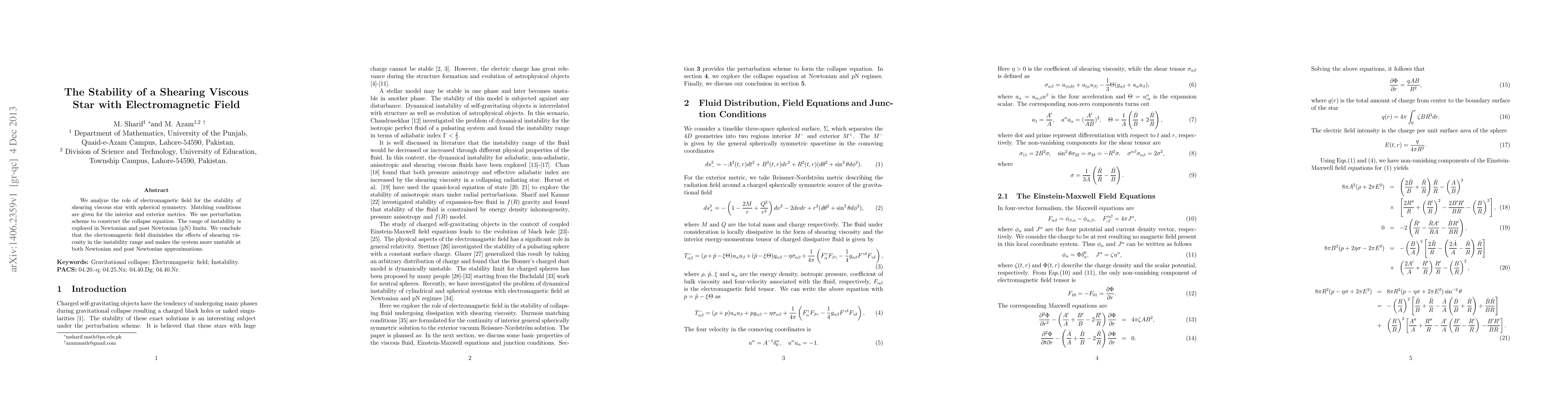 We analyze the role of electromagnetic field for the stability of shearing viscous star with spherical symmetry. Matching conditions are given for the interior and exterior metrics. We use perturbation scheme to construct the collapse equation. The range of instability is explored in Newtonian and post Newtonian (pN) limits. We conclude that the electromagnetic field diminishes the effects of shearing viscosity in the instability range and makes the system more unstable at both Newtonian and post Newtonian approximations.