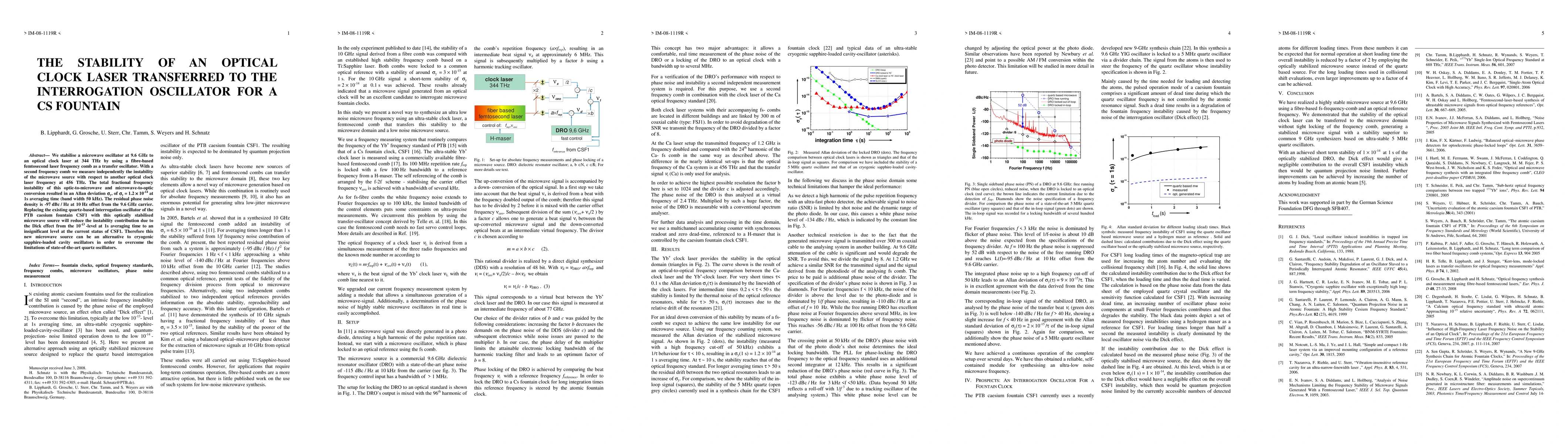 This paper demonstrates the stabilization of a 9.6 GHz microwave oscillator to an optical clock laser using a fibre-based frequency comb, achieving a fractional frequency instability of 1.2E-14 at 1 second averaging time. The new microwave source can replace the quartz-based oscillator in a Cs fountain, significantly reducing instability and surpassing the limitations of current quartz oscillators.