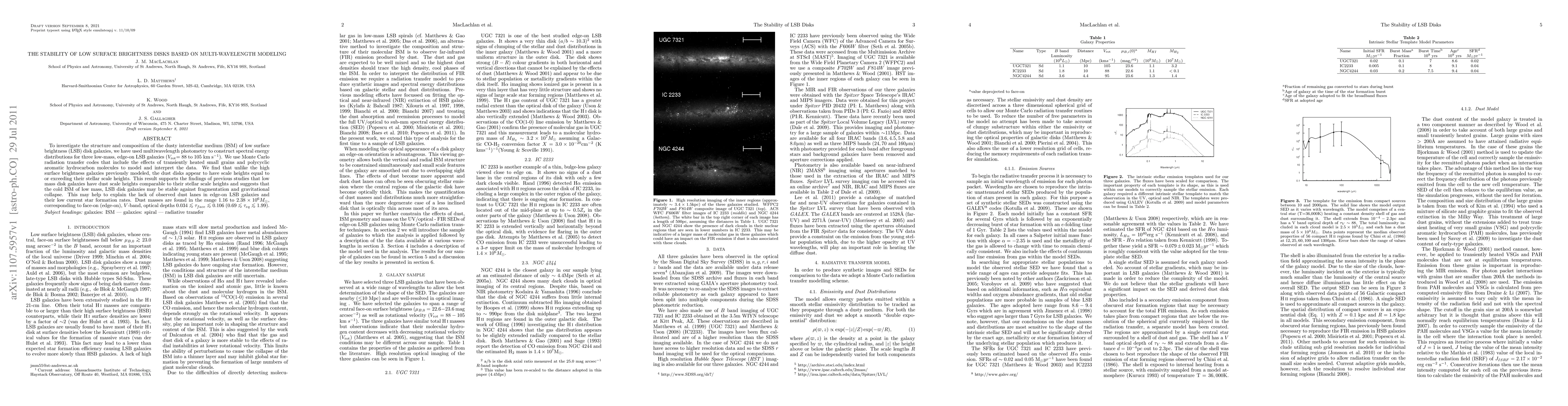 Low surface brightness disk galaxies have stable dust disks with scale heights comparable to their stellar scale heights, suggesting they may avoid fragmentation and collapse.
