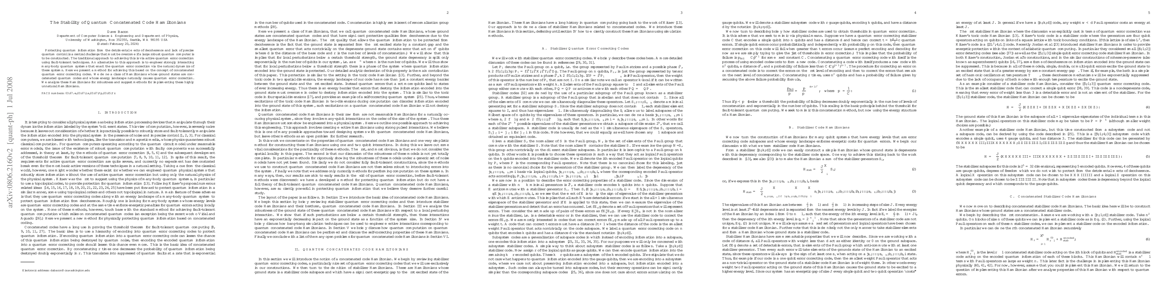 Protecting quantum information from the detrimental effects of decoherence and lack of precise quantum control is a central challenge that must be overcome if a large robust quantum computer is to be constructed. The traditional approach to achieving this is via active quantum error correction using fault-tolerant techniques. An alternative to this approach is to engineer strongly interacting many-body quantum systems that enact the quantum error correction via the natural dynamics of these systems. Here we present a method for achieving this based on the concept of concatenated quantum error correcting codes. We define a class of Hamiltonians whose ground states are concatenated quantum codes and whose energy landscape naturally causes quantum error correction. We analyze these Hamiltonians for robustness and suggest methods for implementing these highly unnatural Hamiltonians.