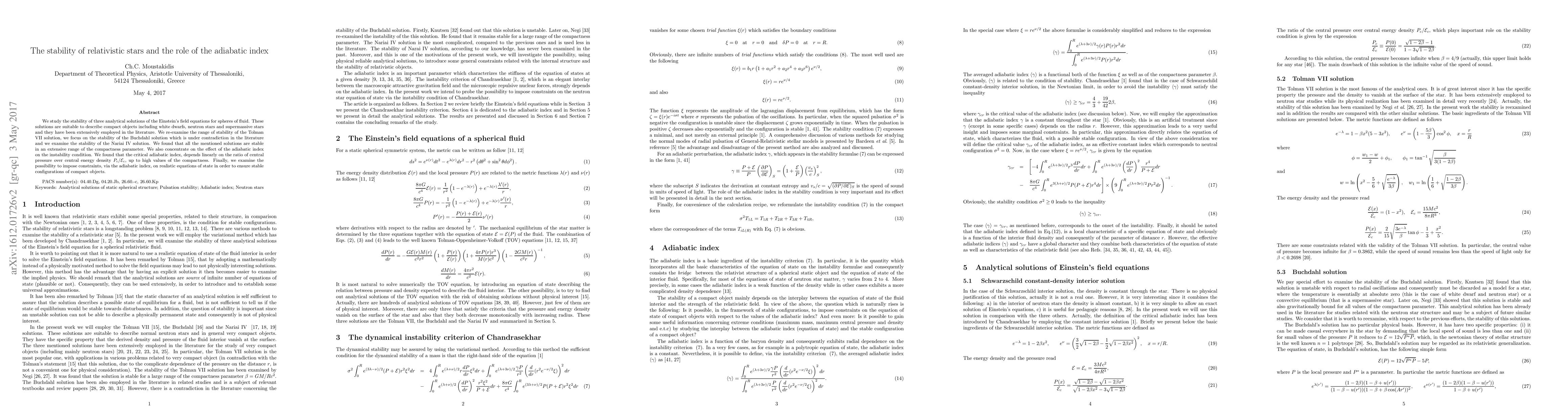 This research re-examines the stability of three relativistic star models, finding them stable over a wide range of compactness. It highlights the role of the adiabatic index in determining stability, showing a linear relationship between critical adiabatic index and central pressure to density ratio. The study suggests using adiabatic index to constrain realistic equations of state for stable compact object configurations.