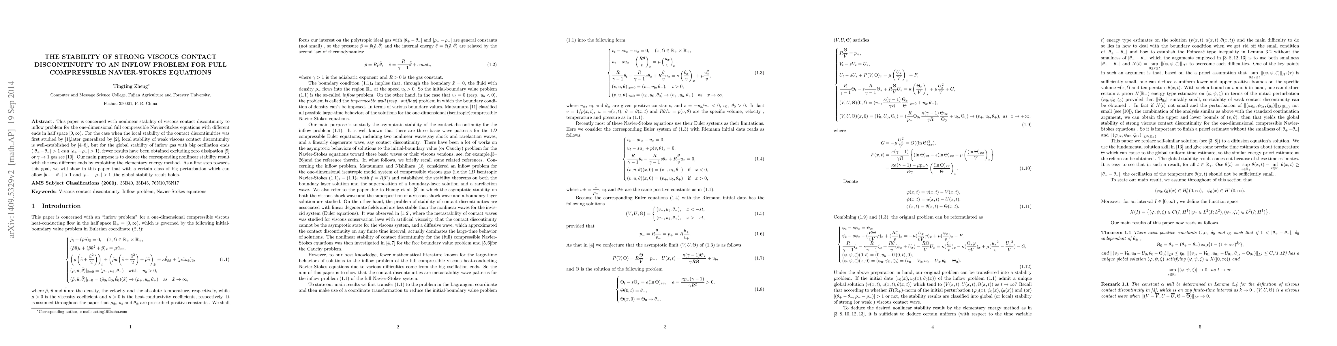 This paper investigates the nonlinear stability of viscous contact discontinuities in the inflow problem for the one-dimensional full compressible Navier-Stokes equations. It establishes global stability results for large perturbations, extending beyond previous local stability findings.