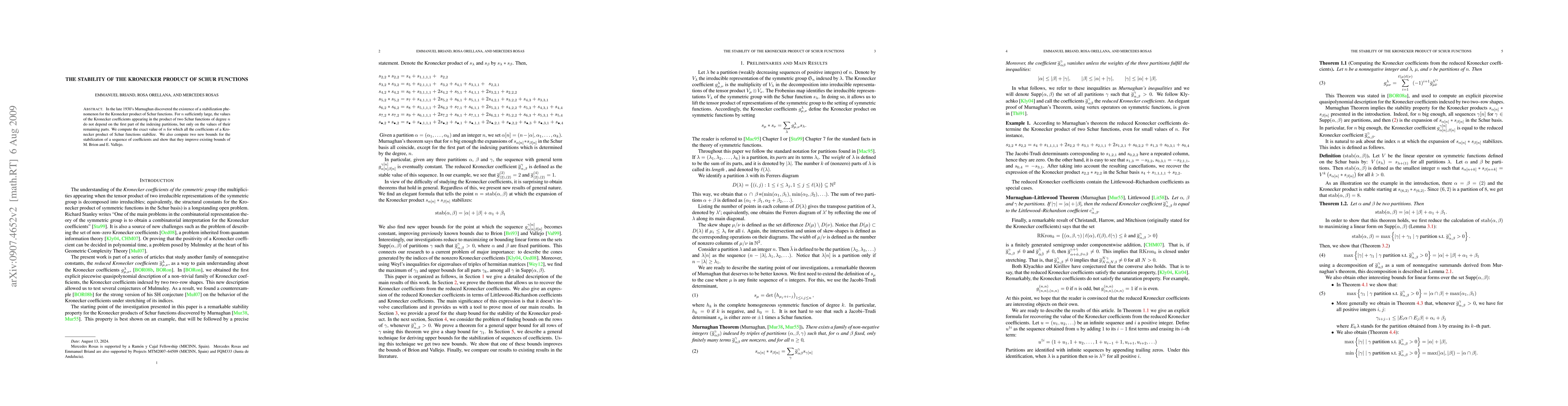 This paper investigates the stabilization phenomenon in the Kronecker products of Schur functions, determining the exact value of n for which all coefficients stabilize. It also provides two new improved bounds for the stabilization of these coefficients, surpassing previous results by M. Brion and E. Vallejo.