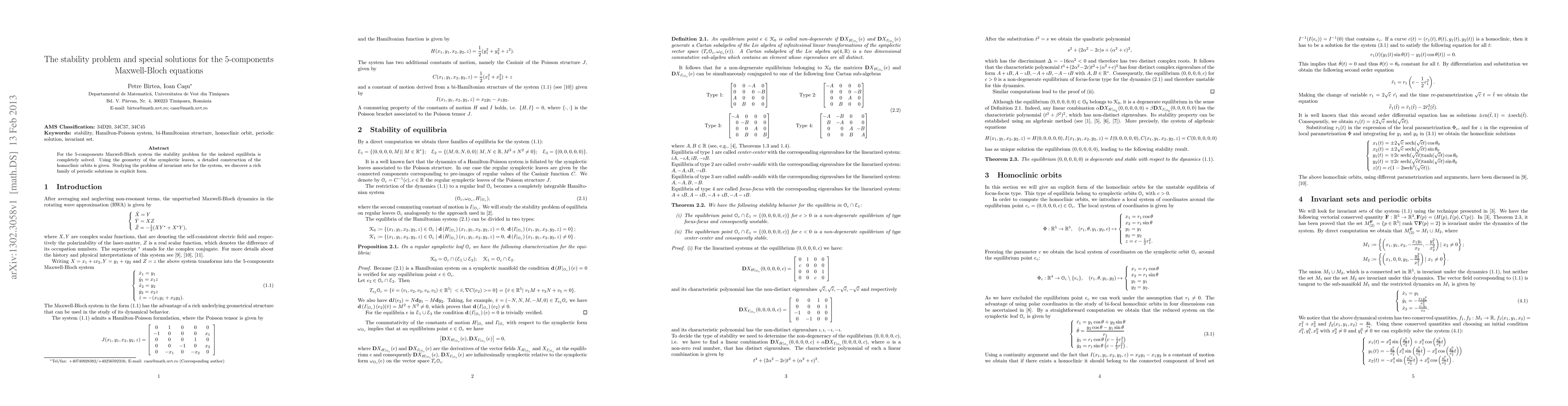 This paper resolves the stability of isolated equilibria for the 5-component Maxwell-Bloch system and constructs homoclinic orbits using symplectic leaf geometry. It also identifies a diverse set of periodic solutions in explicit form.