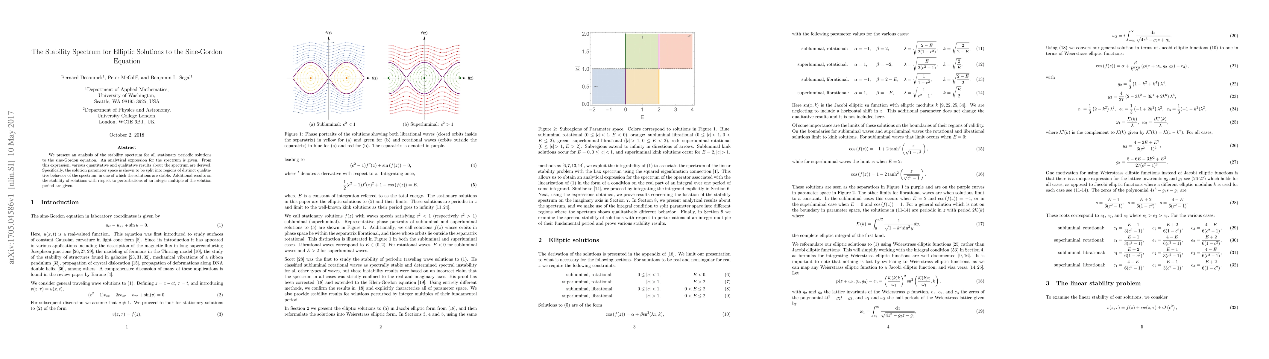 This paper analyzes the stability spectrum for stationary periodic solutions to the sine-Gordon equation, providing an analytical expression for the spectrum and identifying regions where solutions are stable. It also explores the stability under perturbations of the solution period.
