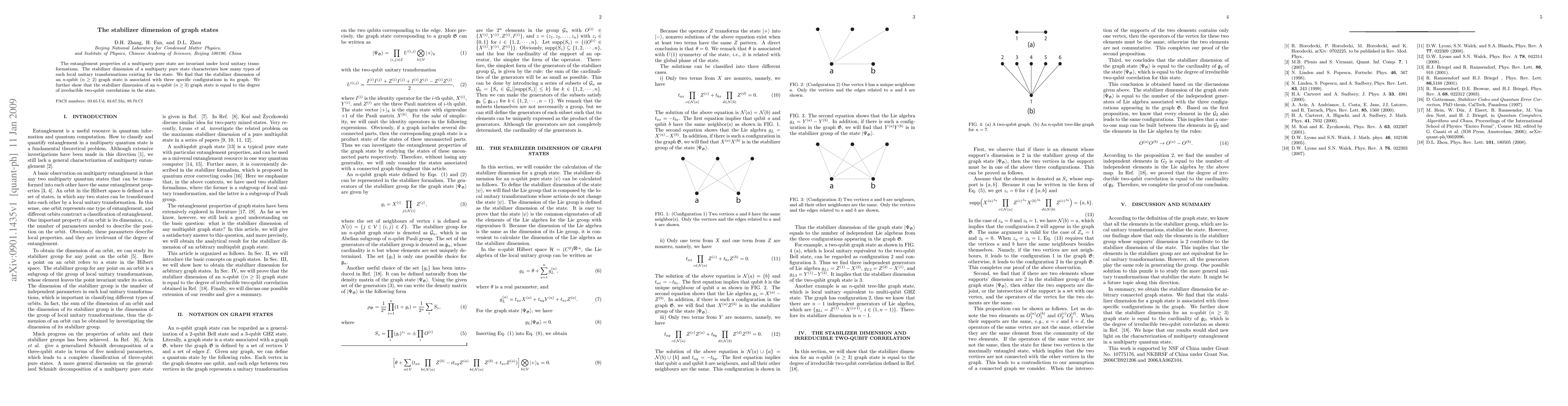 Summary: The paper investigates the stabilizer dimension of multiparty graph states, finding a connection between the dimension and specific configurations in the state's graph. It demonstrates that for $n \ge 3$ qubits, the stabilizer dimension equals the degree of irreducible two-qubit correlations in the state.