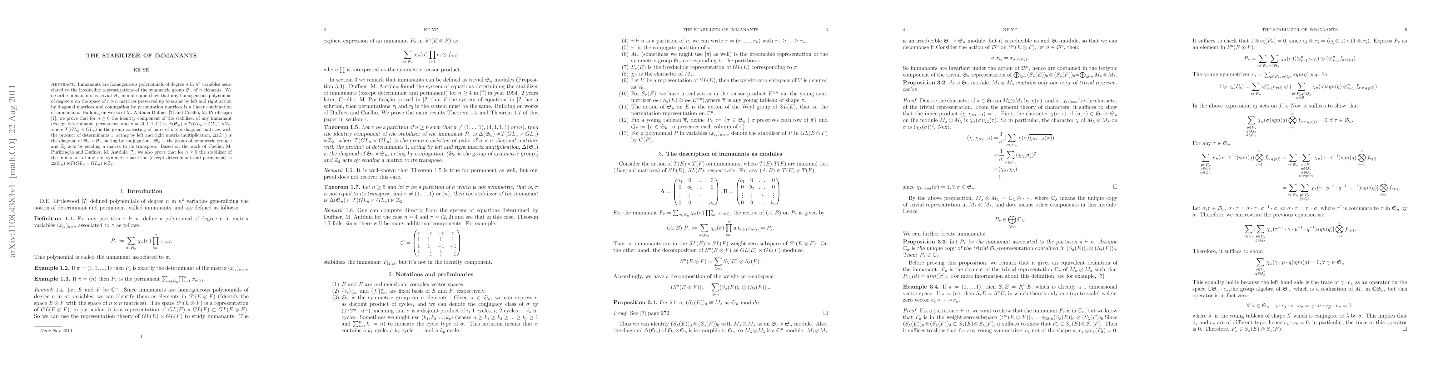 This paper demonstrates that any homogeneous polynomial preserved by diagonal and permutation matrices is a linear combination of immanants. It proves that the identity component of the stabilizer for immanants (excluding determinant and permanent) is as expected, and for n>5, the stabilizer for non-symmetric immanants (again excluding determinant and permanent) matches the expected structure.