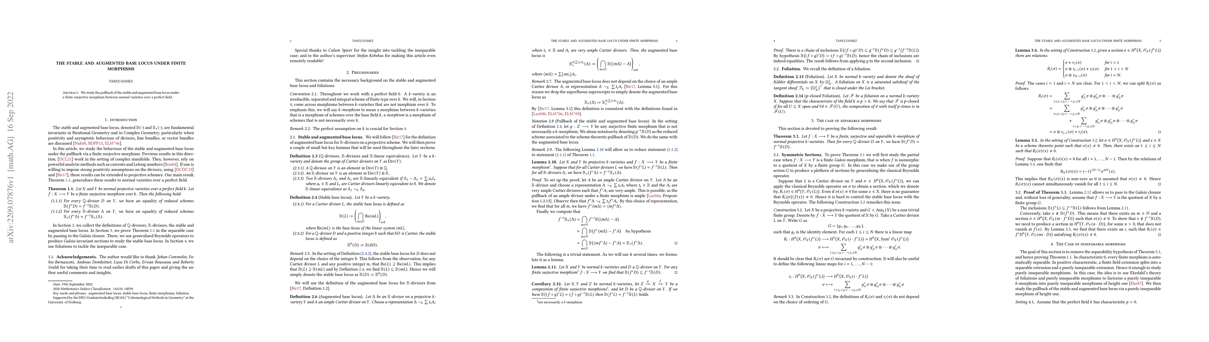 Summary: This paper investigates how the stable and augmented base loci transform via pullback under finite surjective morphisms between normal varieties over a perfect field, providing insights into their behavior and properties.
