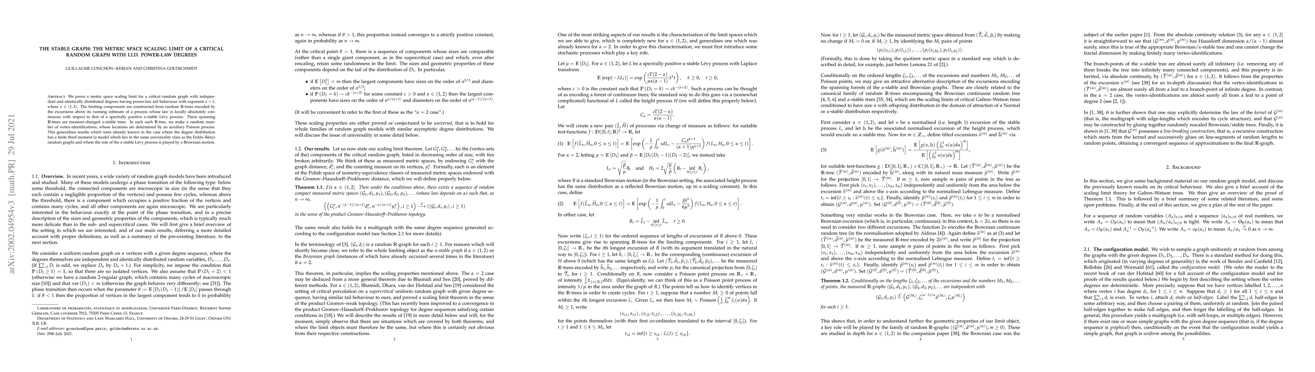 This paper establishes a metric space scaling limit for a critical random graph with power-law degree distribution, showing that its limiting components are random $\mathbb{R}$-trees derived from excursions of an $\alpha$-stable L\'evy process. This generalizes previous results for graphs with finite third moment degrees.