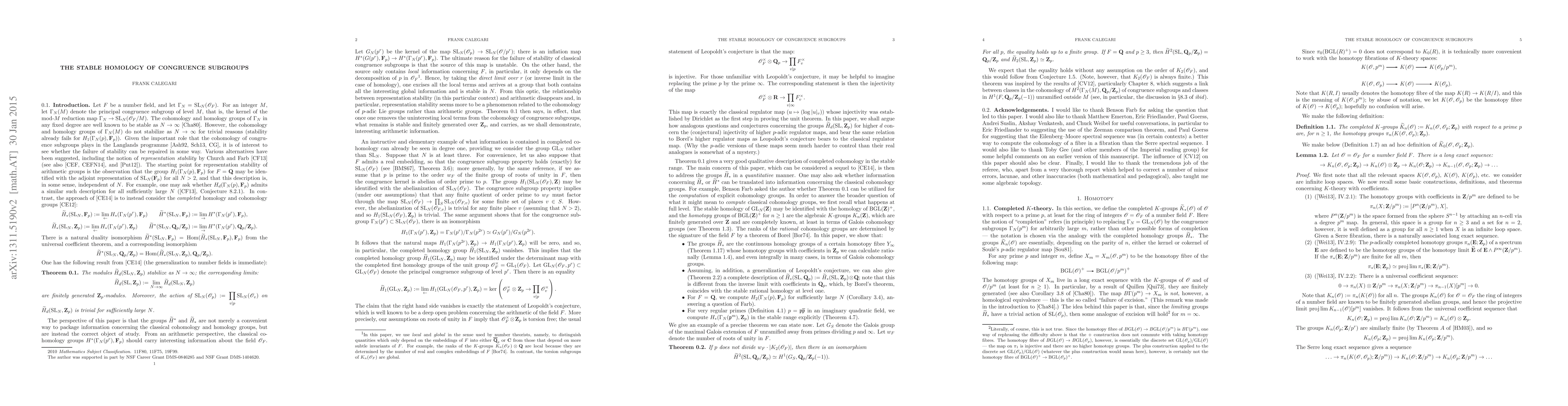 In a previous paper, the author (together with Matthew Emerton) proved that the completed cohomology groups of SL_N(Z) are stable in fixed degree as N goes to infinity (Z may be replaced by the ring O_F of integers of any number field). In this paper, we relate these completed cohomology groups to K-theory and Galois cohomology. Various consequences include showing that Borel's stable classes become infinitely p-divisible up the p-congruence tower if and only if a certain p-adic zeta value is non-zero. We use our results to compute H_2(Gamma_N(p),F_p) (for sufficiently large N) where Gamma_N(p) is the full level-p congruence subgroup of SL_N(Z).