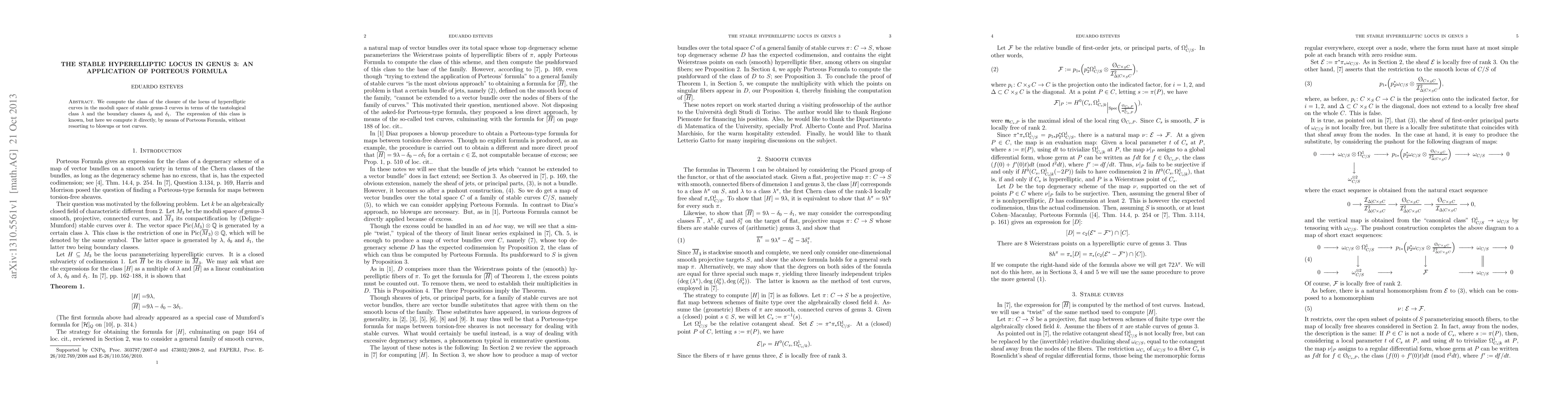 Researchers compute the class of the closure of hyperelliptic curves in genus-3 moduli space using Porteous Formula, providing a direct calculation without relying on blowups or test curves.