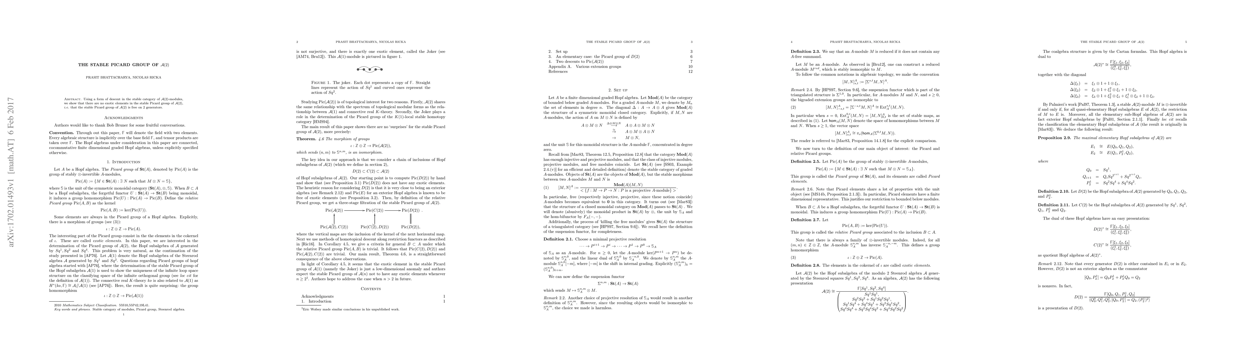 Using a form of descent in the stable category of $\mathcal{A}(2)$-modules, we show that there are no exotic elements in the stable Picard group of $\mathcal{A}(2)$, \textit{i.e.} that the stable Picard group of $\mathcal{A}(2)$ is free on $2$ generators.