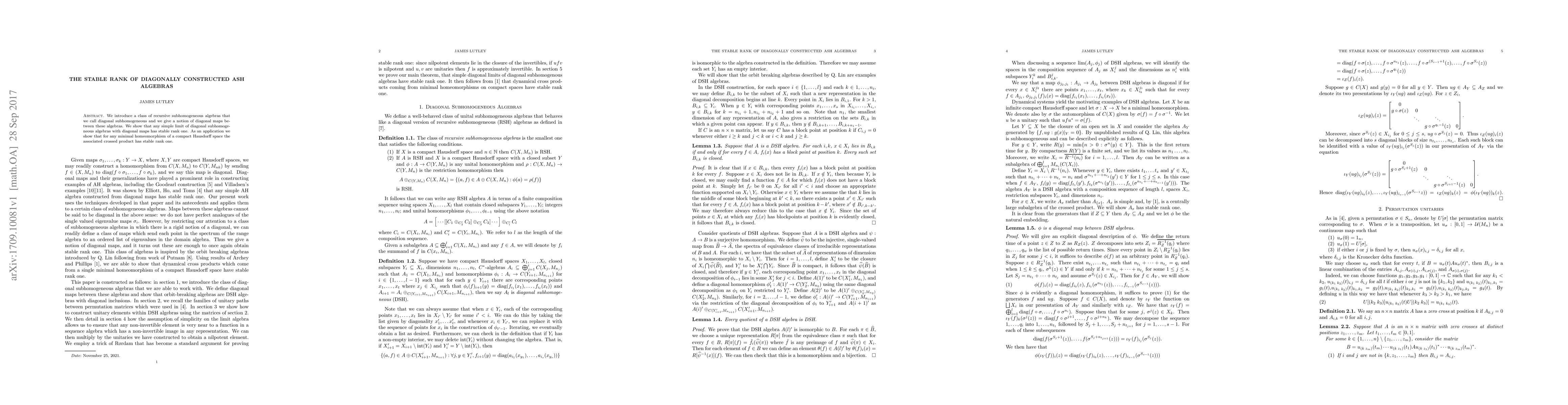 We introduce a class of recursive subhomogeneous algebras that we call diagonal subhomogeneous and we give a notion of diagonal maps between these algebras. We show that any simple limit of diagonal subhomogeneous algebras with diagonal maps has stable rank one. As an application we show that for any minimal homeomorphism of a compact Hausdorff space the associated crossed product has stable rank one.