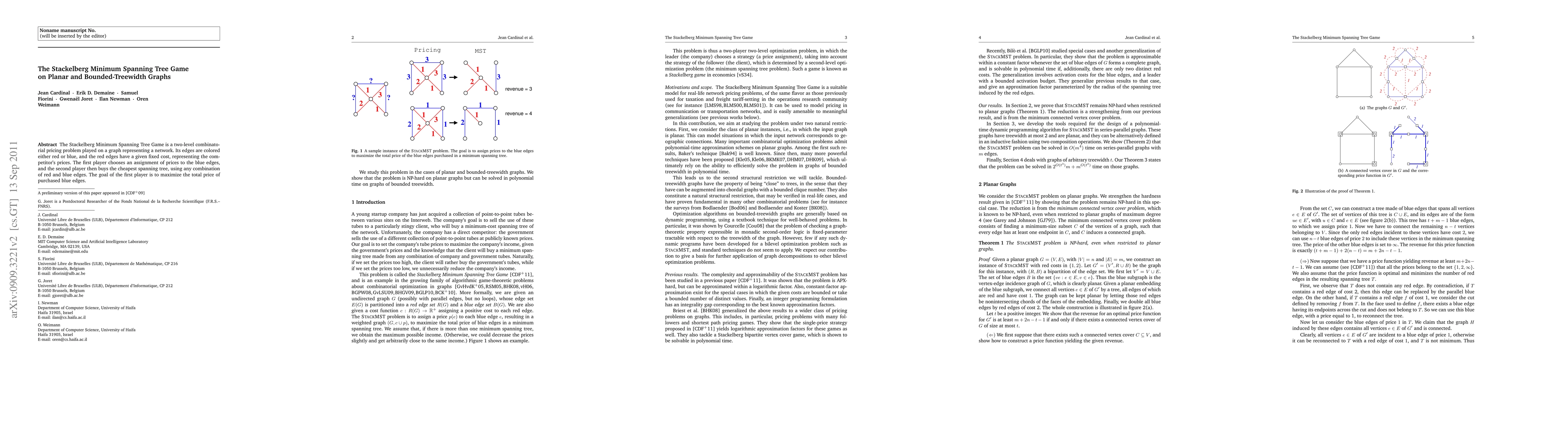 This paper explores the Stackelberg Minimum Spanning Tree Game on planar and bounded-treewidth graphs, demonstrating NP-hardness for planar graphs but providing a polynomial-time solution for graphs with bounded treewidth.