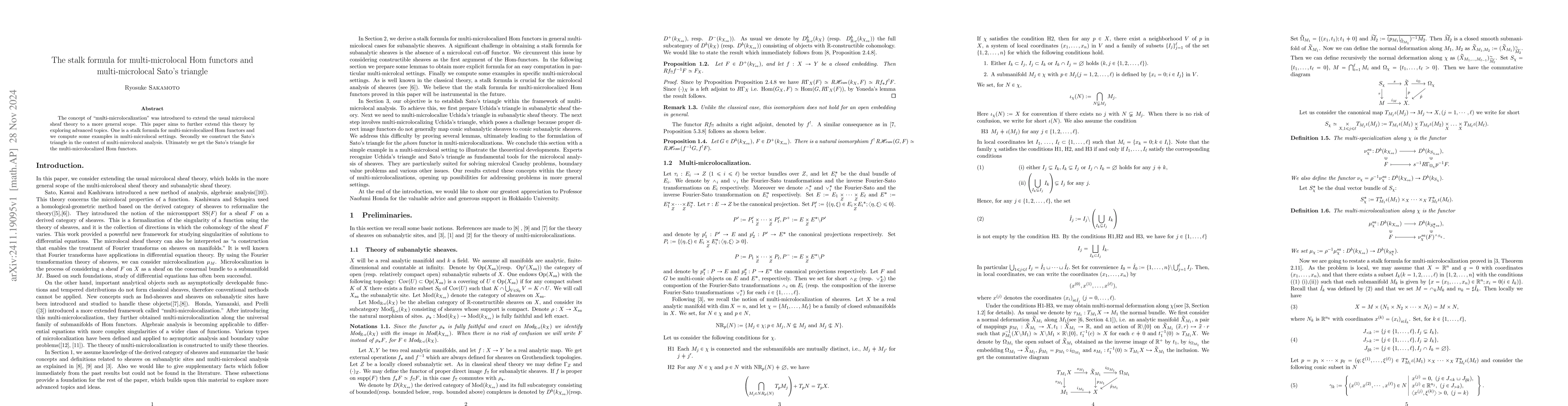 This paper extends multi-microlocal sheaf theory by introducing a stalk formula for multi-microlocalized Hom functors and constructing multi-microlocal Sato's triangle, thereby generalizing microlocal analysis.