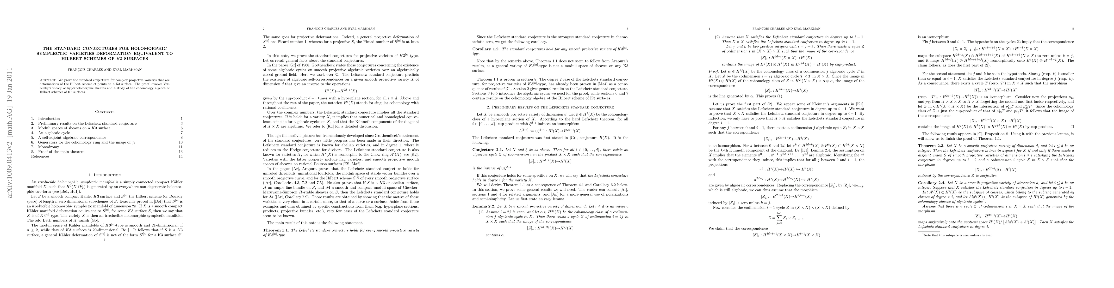 Summary: This paper proves the standard conjectures for complex projective varieties deformation equivalent to Hilbert schemes of K3 surfaces, leveraging Verbitsky's hyperholomorphic sheaves and a detailed analysis of the cohomology algebra of these schemes.