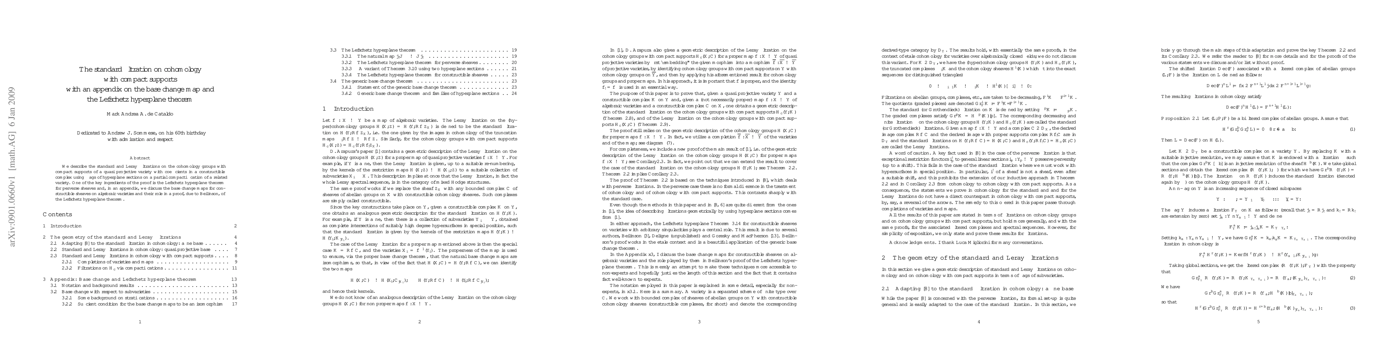This paper explores the standard and Leray filtrations on cohomology with compact supports for quasi-projective varieties using hyperplane sections. It employs the Lefschetz hyperplane theorem for perverse sheaves and includes an appendix discussing base change maps for constructible sheaves.