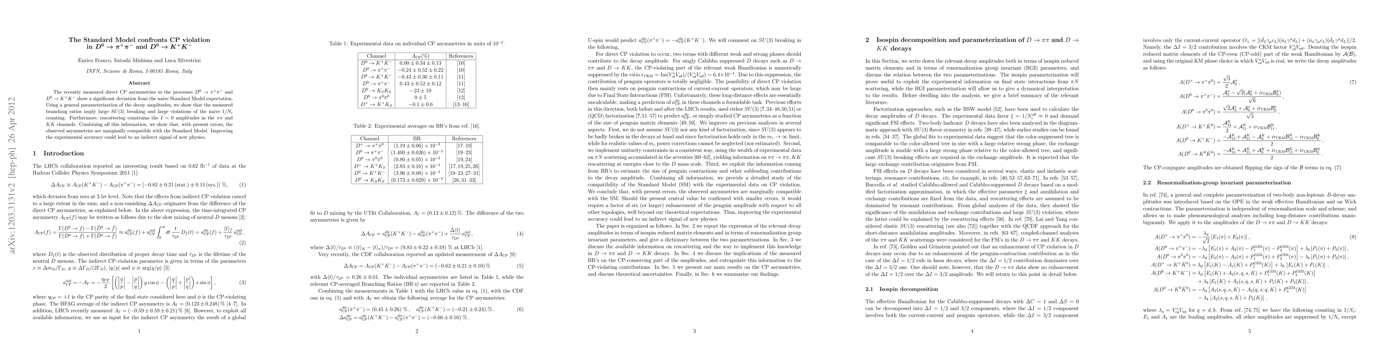 Experimental data shows significant CP violation in D^0 decays to pi^+/pi^- and K^+K^-, which may indicate new physics if improved experimental accuracy is reached.