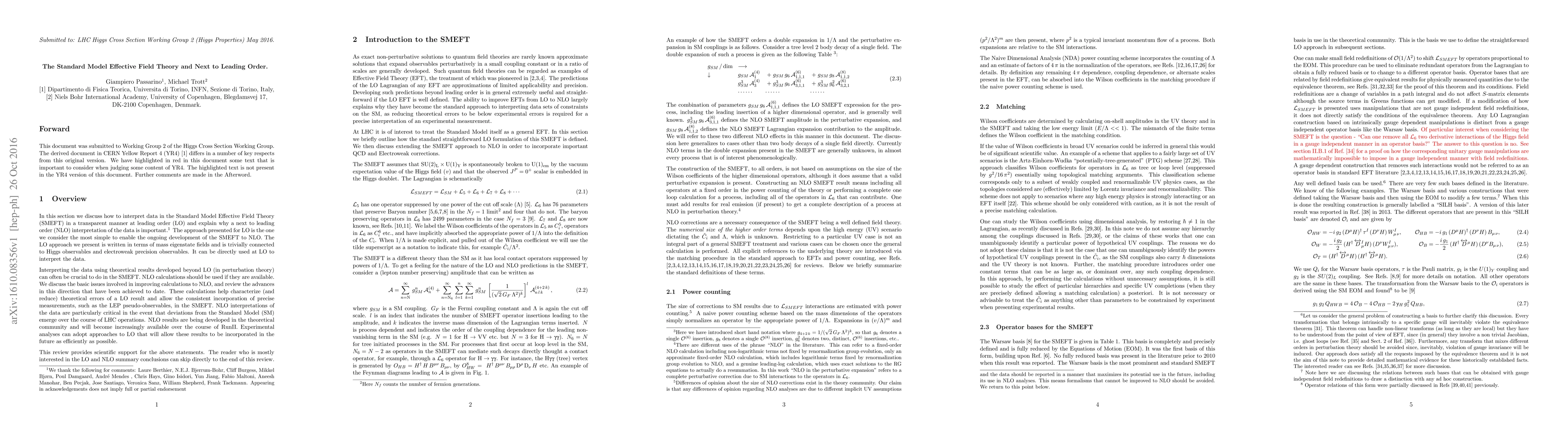 We review the status of calculations in the Standard Model Effective Field Theory (SMEFT) beyond leading order (LO). Improving the SMEFT beyond LO allows theoretical errors to be characterized and reduced when considering SMEFT interpretations of the data, which is essential considering the improving experimental precision at LHC. Next to leading order results also allow a more consistent analysis of measurements with different effective scales in the SMEFT. Going beyond LO is clearly important in the event that deviations from the SM are large enough that experimental indications of physics beyond the SM emerge. We discuss a consistent and well defined approach to LO in the SMEFT, so that the improvement to NLO is straightforward. We discuss the basic issues involved in improving calculations to NLO in the SMEFT, and review the advances in this direction that have been achieved to date.