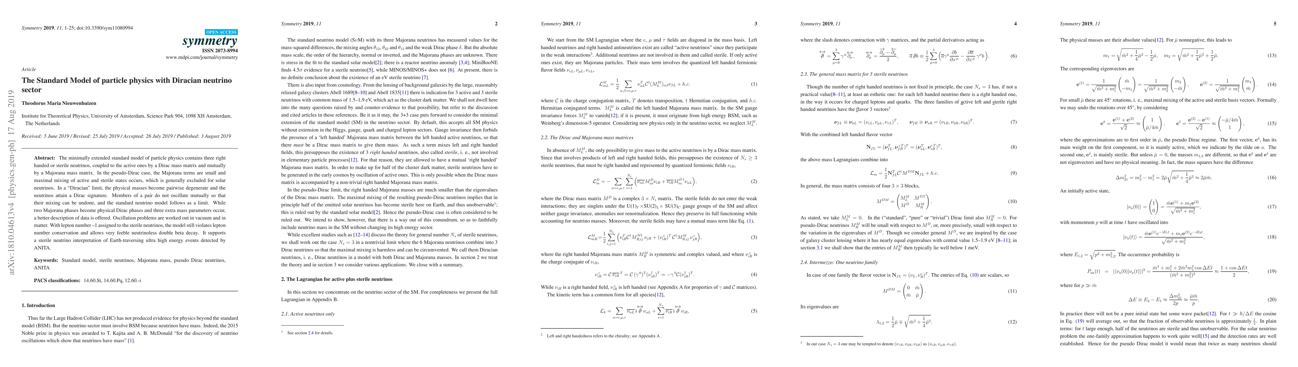 The minimally extended standard model of particle physics contains three right handed or sterile neutrinos, coupled to the active ones by a Dirac mass matrix and mutually by a Majorana mass matrix. In the pseudo-Dirac case, the Majorana terms are small and maximal mixing of active and sterile states occurs, which is generally excluded for solar neutrinos. In a "Diracian" limit, the physical masses become pairwise degenerate and the neutrinos attain a Dirac signature. Members of a pair do not oscillate mutually so that their mixing can be undone, and the standard neutrino model follows as a limit. While two Majorana phases become physical Dirac phases and three extra mass parameters occur, a better description of data is offered. Oscillation problems are worked out in vacuum and in matter. With lepton number -1 assigned to the sterile neutrinos, the model still violates lepton number conservation and allows very feeble neutrinoless double beta decay. It supports a sterile neutrino interpretation of Earth-traversing ultra high energy events detected by ANITA.