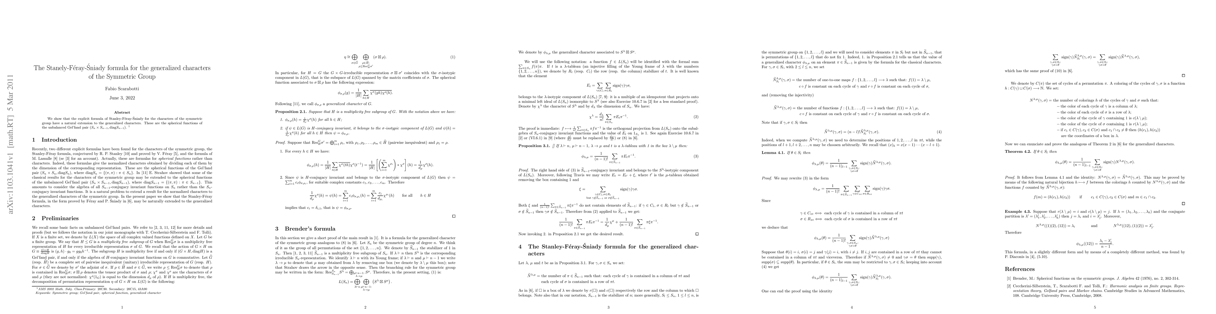 We show that the explicit formula of Stanley-F\'eray-\'Sniady for the characters of the symmetric group have a natural extension to the generalized characters. These are the spherical functions of the unbalanced Gel'fand pair $(S_n\times S_{n-1},\text{diag}S_{n-1})$.
