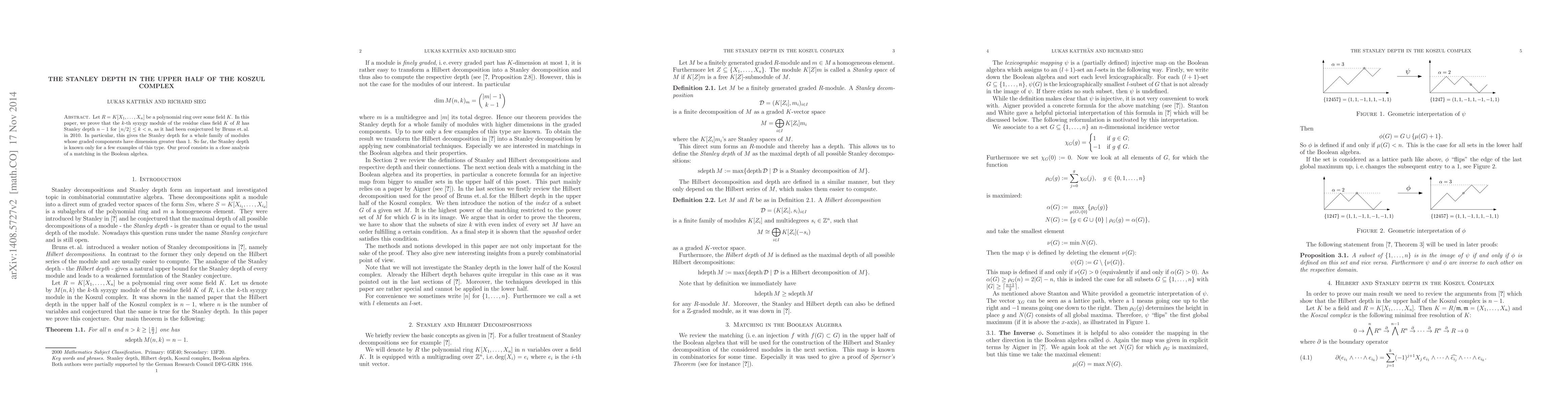 This paper establishes that the $k$-th syzygy module of the residue class field $K$ in a polynomial ring $R$ has Stanley depth $n-1$ for $\lfloor n/2 \rfloor \leq k < n$, resolving a conjecture from 2010. The proof leverages a detailed analysis of matchings in Boolean algebra.