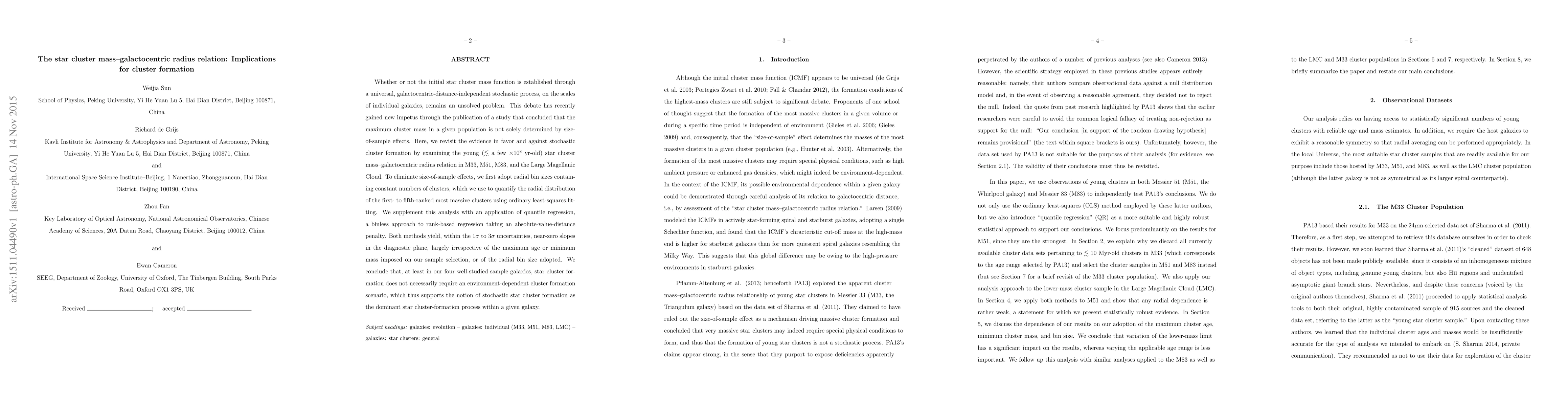 The paper introduces a robust methodology for analyzing the young star cluster mass--galactocentric radius relation using both OLS and QR techniques, providing a detailed examination of size-of-sample effects and supporting stochastic star cluster formation.