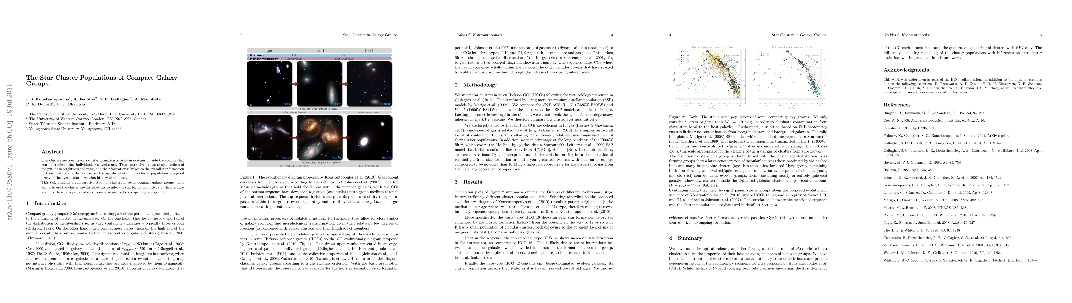 This study examines the star cluster populations in seven compact galaxy groups to infer their star formation histories and link them to an evolutionary sequence for these groups. The age distribution of star clusters serves as a proxy for the overall star formation activity in their host galaxies.
