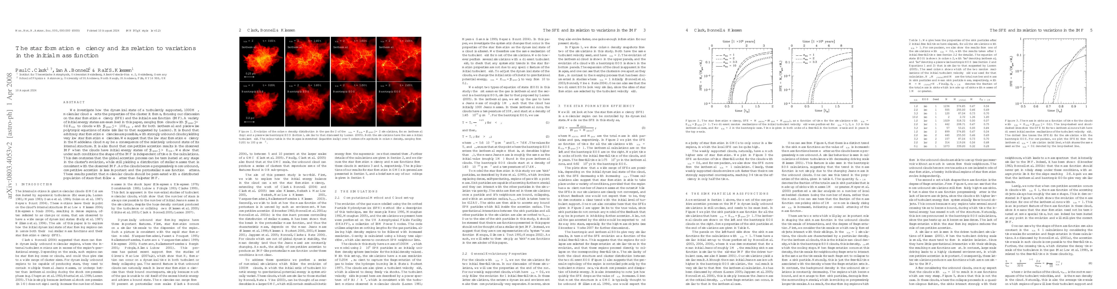 We investigate how the dynamical state of a turbulently supported, 1000 solar mass, molecular cloud affects the properties of the cluster it forms, focusing our discussion on the star formation efficiency (SFE) and the initial mass function (IMF). A variety of initial energy states are examined in this paper, ranging from clouds with PE = 0.1 KE to clouds with PE = 10 KE, and for both isothermal and piece-wise polytropic equations of state (similar to that suggested by Larson). It is found that arbitrary star formation efficiencies are possible, with strongly unbound clouds yielding very low star formation efficiencies. We suggest that the low star formation efficiency in the Maddelena cloud may be a consequence of the relatively unbound state of its internal structure. It is also found that competitive accretion results in the observed IMF when the clouds have initial energy states of PE >= KE. We show that under such conditions the shape of the IMF is independent of time in the calculations. This demonstrates that the global accretion process can be terminated at any stage in the cluster's evolution, while still yielding a distribution of stellar masses that is consistent with the observed IMF. As the clouds become progressively more unbound, competitive accretion is less important and the protostellar mass function flattens. These results predict that molecular clouds should be permeated with a distributed population of stars that follow a flatter than Salpeter IMF.