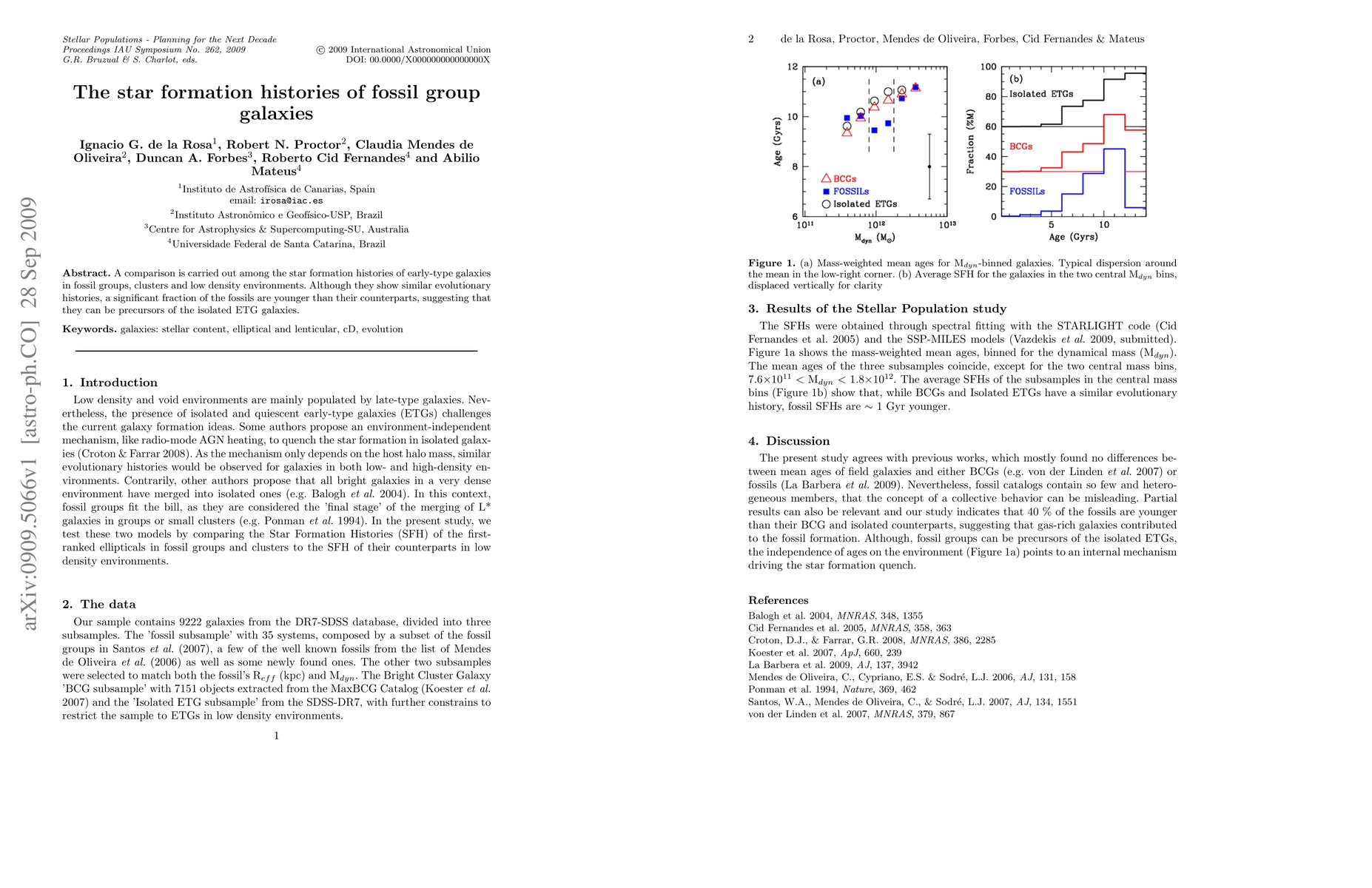 A comparison is carried out among the star formation histories of early-type galaxies (ETG) in fossil groups, clusters and low density environments. Although they show similar evolutionary histories, a significant fraction of the fossils are younger than their counterparts, suggesting that fossils can be precursors of the isolated ETGs.