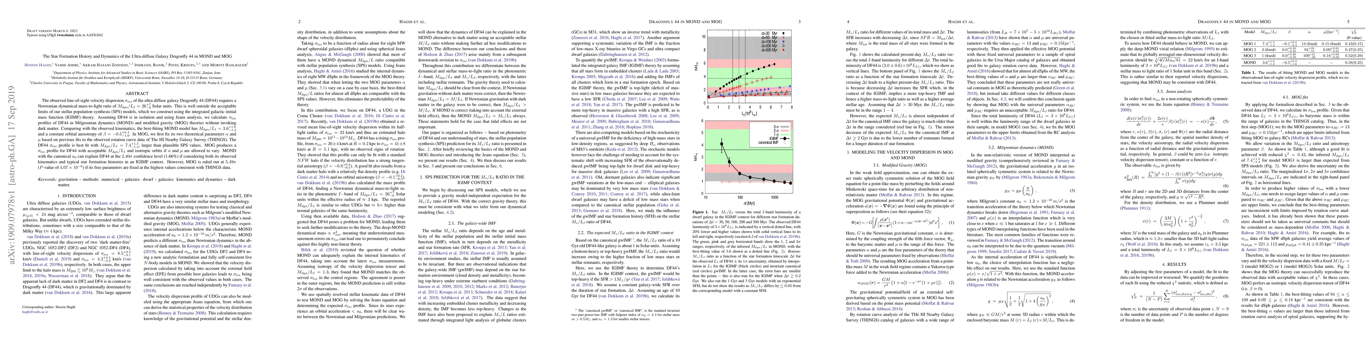 Researchers used MOND and MOG theories to explain the ultra-diffuse galaxy Dragonfly 44's unusual velocity dispersion, finding that MOND better fits the data at a significant level of confidence.